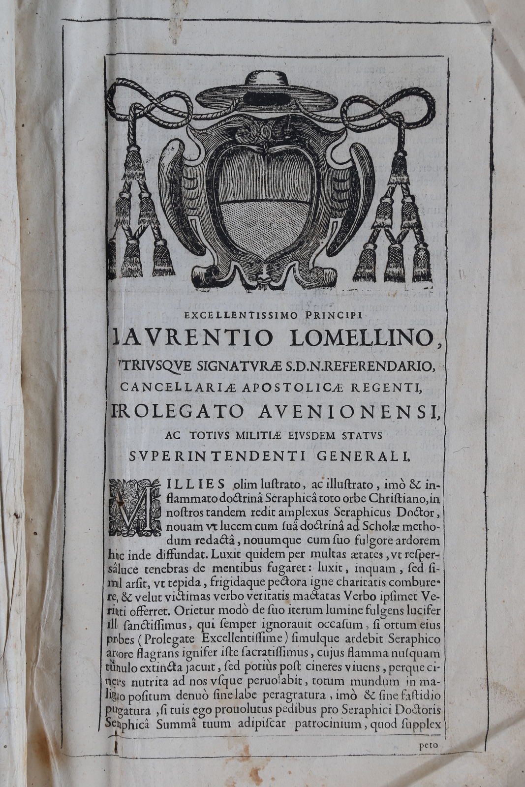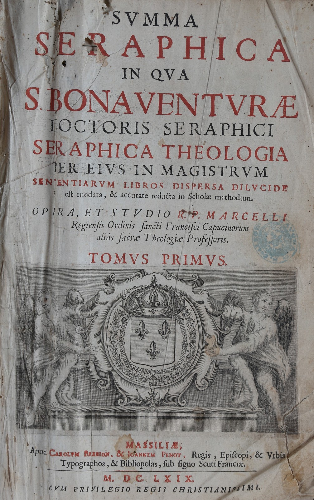 ARTISTA DEL XVII SECOLO. San Bonaventura e volume Summa Theologica. Scultura....