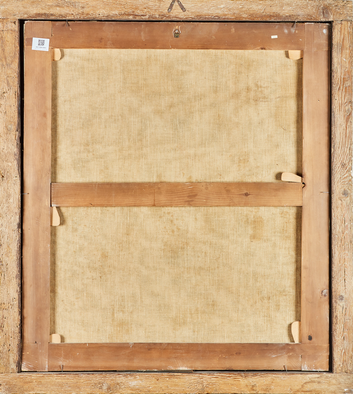 CIFRONDI ANTONIO (1657 - 1730) Paesaggio con porto di mare e personaggi. Olio su tela . Cm 98,00 x 110,00. . Cornice presente