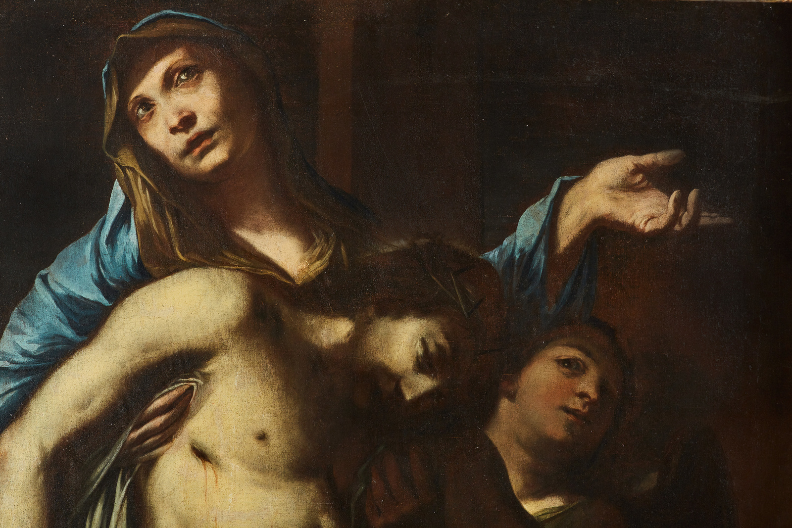 ARTISTA LOMBARDO DEL XVII SECOLO Compianto su Cristo morto. Olio su tela . Cm 100,00 x 140,00. L'opera è accompagnata da scheda attributiva di Egidio Martini che lo riferisce a Daniele Crespi (1598-1630).