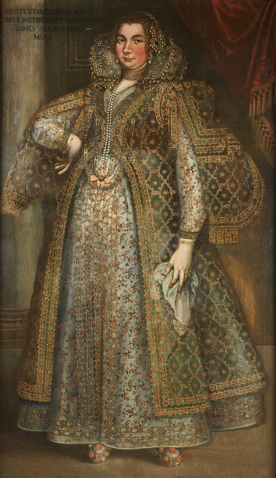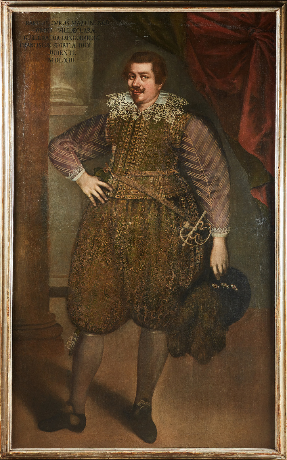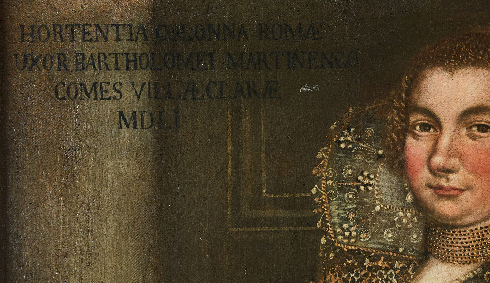 ARTISTA ITALIANO DEL XVI SECOLO Coppia di ritratti raffiguranti Bartolomeo Martinengo e la moglie Artemisia Colonna. 1551. Olio su tela . Cm 120,00 x 225,00. Entrambi i dipinti riportano in alto a destra i nomi degli effigiati. il ritratto di Artemisia Colonna la data 1551. Cornice presente