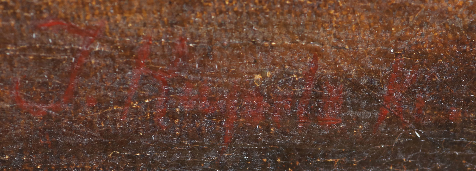 ARTISTA ROMANO DEL XVII SECOLO Paesaggio con musicanti e armenti. Olio su tela . Cm 91,00 x 68,00. Firma illeggibile in basso a destra. Cornice presente