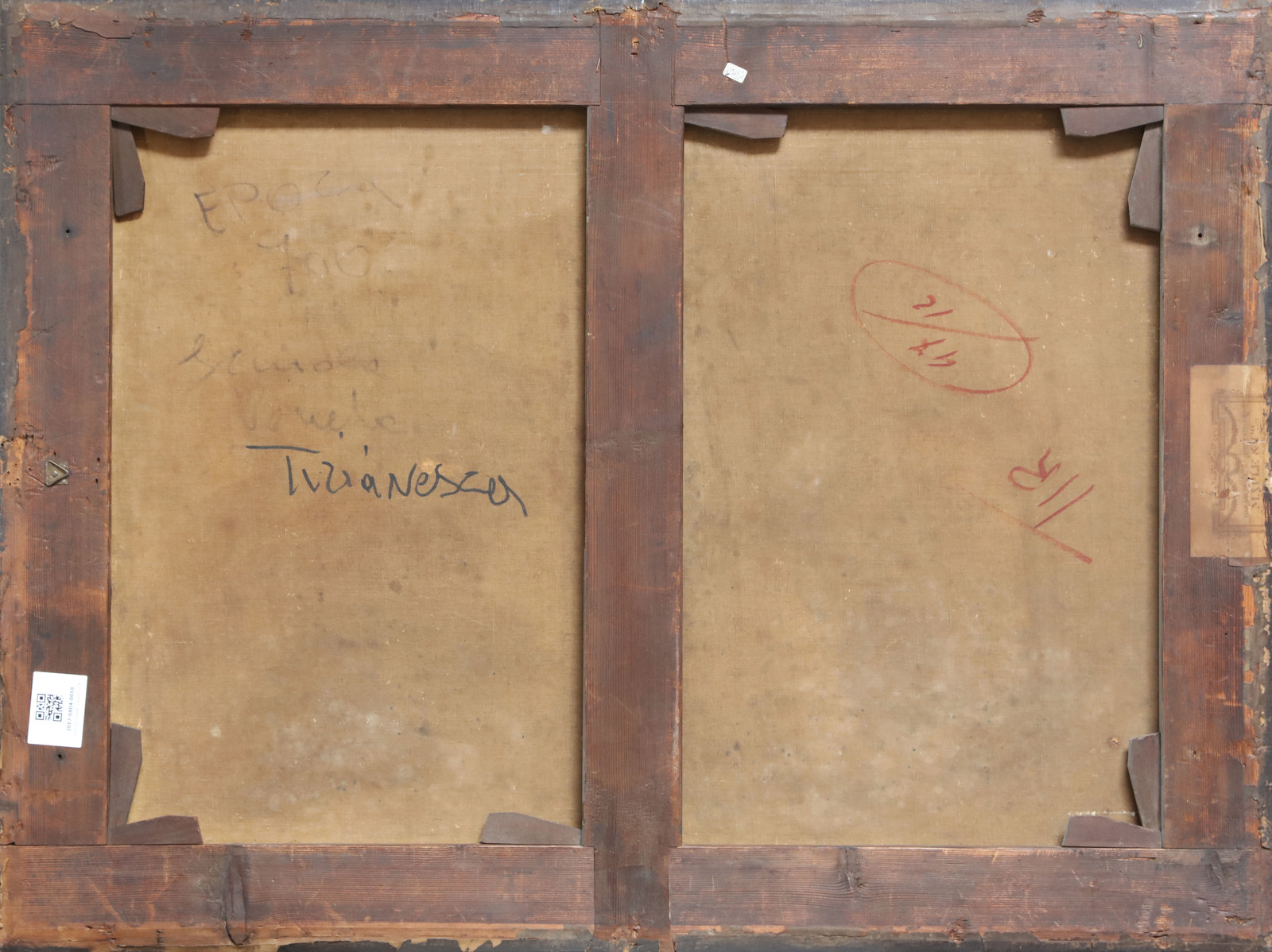 AFTER TIZIABNO VECELLIO (1480-1576) . Oil on canvas . Cm 71,00 x 91,00. . Cornice presente