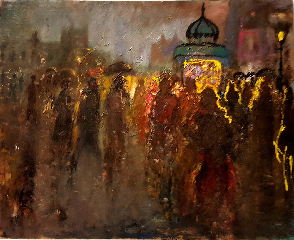 Carlo Pusateri, "Vecchia Londra", anni '70, olio su tavola cm 70x57