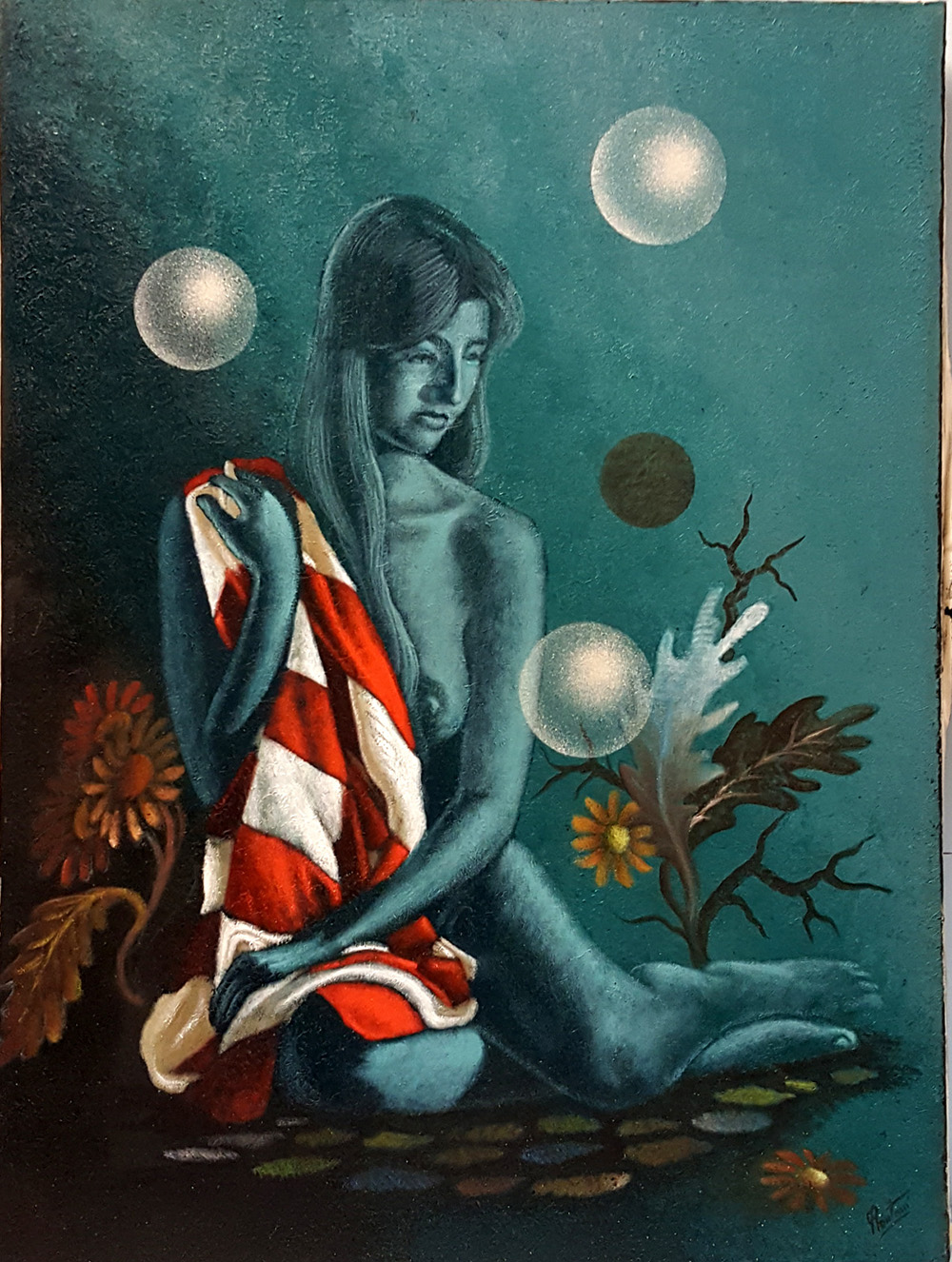 Gianfranco Rontani, "Modella in blu", olio su tela cm 80x60, firma in basso a destra, firma e nr.archivio al retro