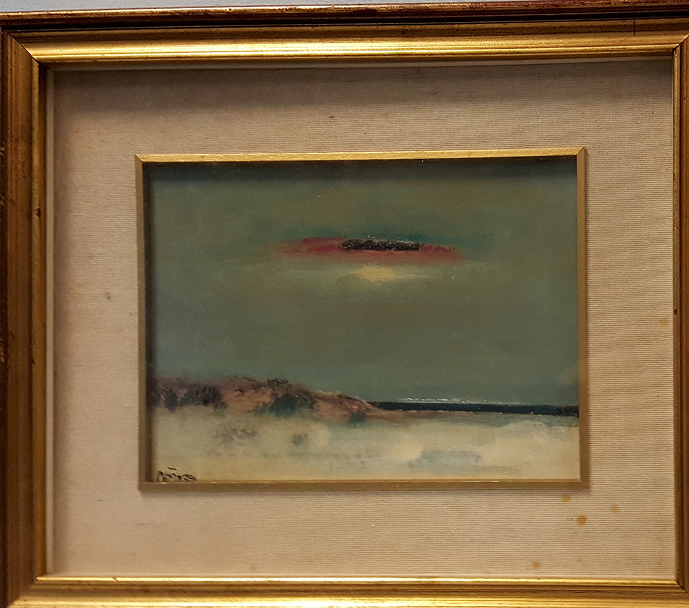 Pippo Pozzi, "Marina", olio su tela cm 18x24, firma in basso a sinistra, firma dedica e n.d'archivio al retro