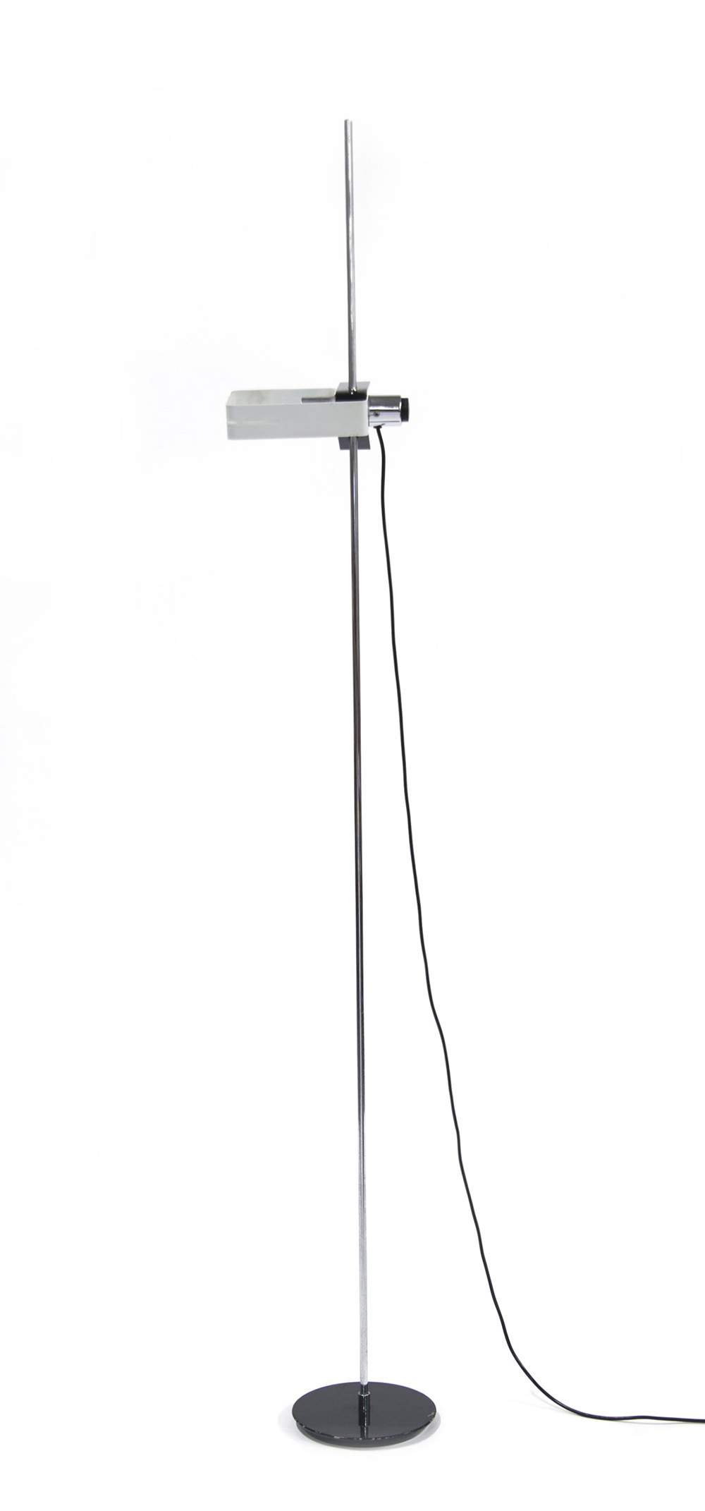Lampada da terra con base in metallo e stelo in metallo cromato. Probabile produzione O-Luce, Milano, anni 60 (h cm 192) (lievi difetti)