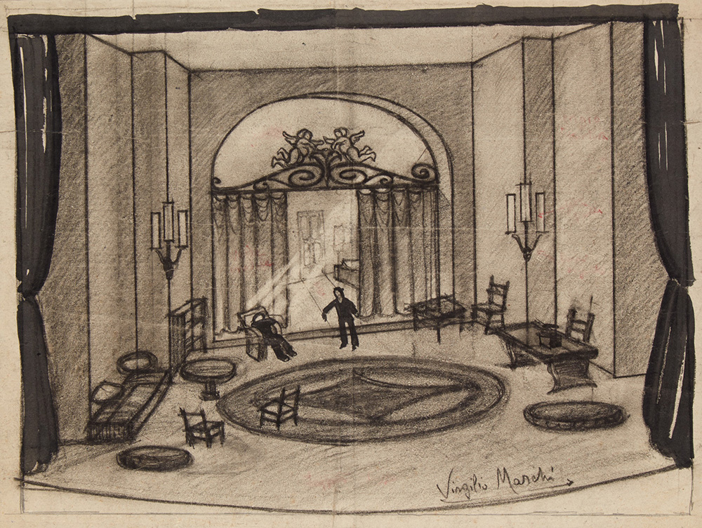 Virgilio Marchi (Livorno 1895 - Roma 1960) Disegno/bozzetto per scenografia,...