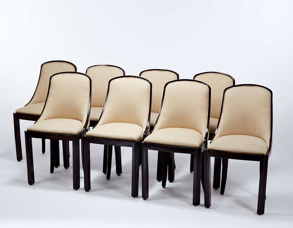 * Lotto composto da otto sedie di gusto Secessionista in legno massello, con...