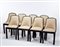 * Lotto composto da otto sedie di gusto Secessionista in legno massello, con sedute e schienali imbottiti rivestiti in tessuro beige. Austria, inizi sec XX (cm 46x86x50) (difetti e restauri)