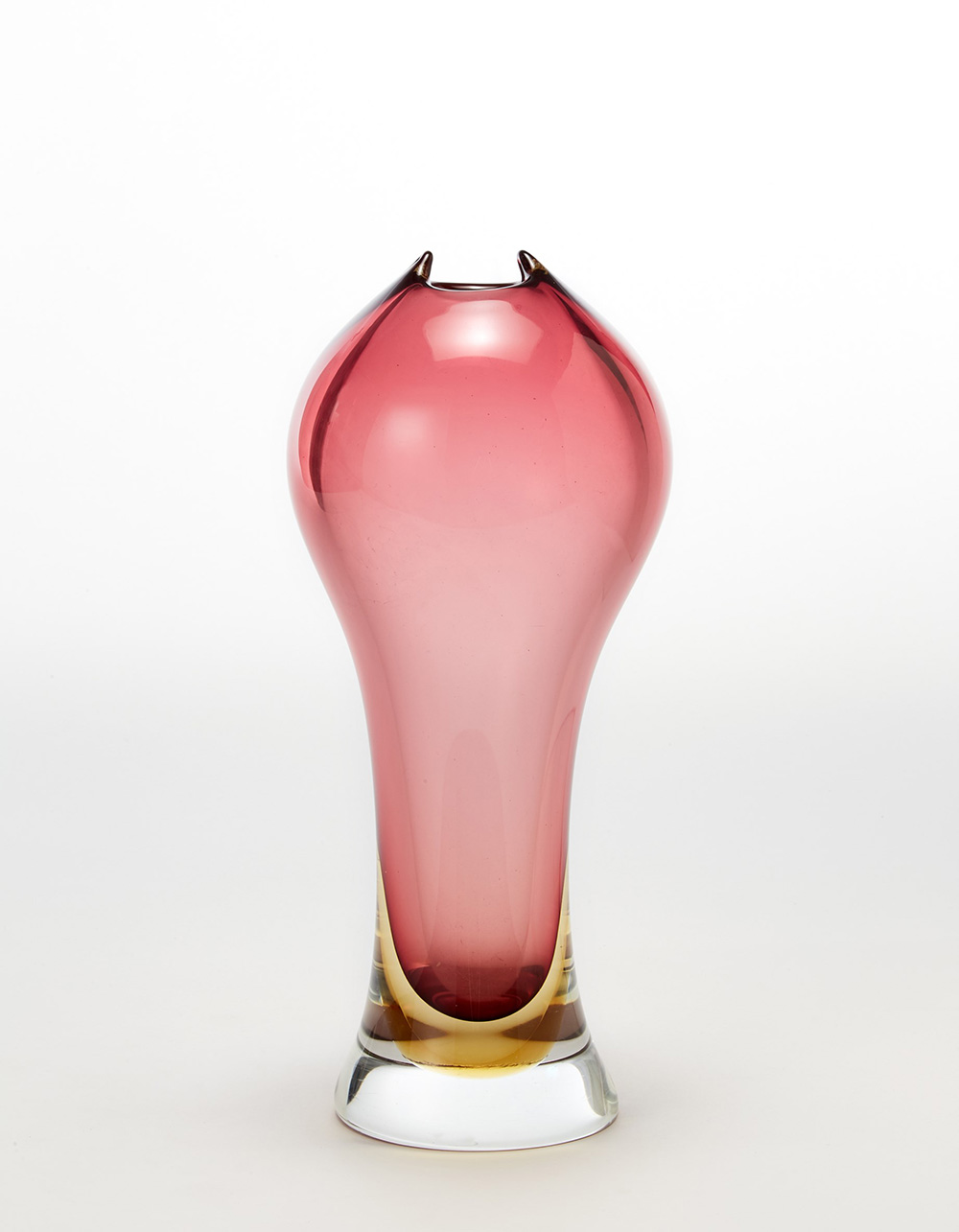 Seguso (attribuito) Vaso a balaustro in vetro sommerso incolore pagliesco e ametista chiaro. Murano, anni 60 (h cm 37)