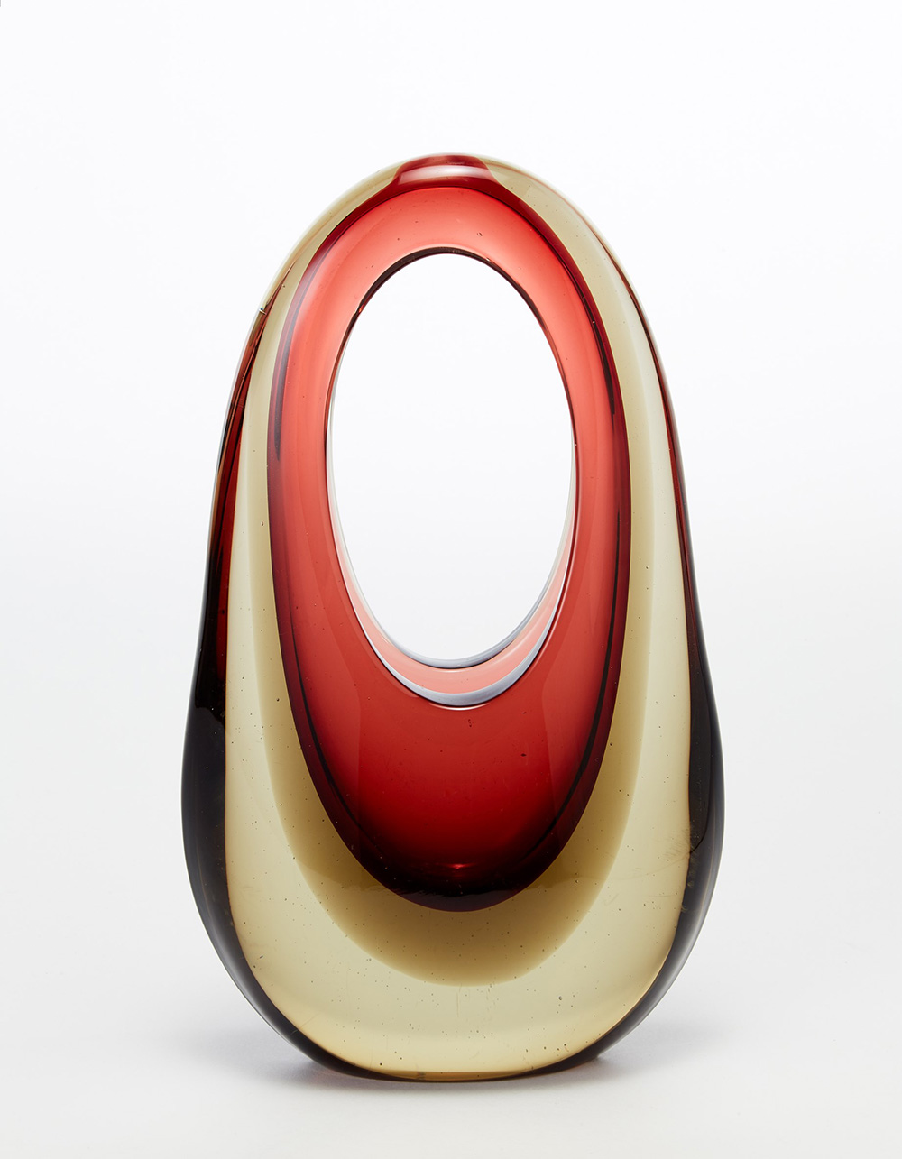 Lotto 84 | Seguso (attribuito) Vaso forato in vetro sommerso ambrato e rosso. Murano,...