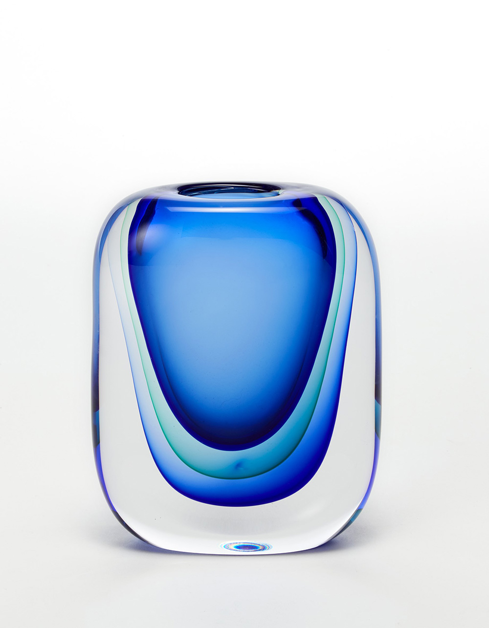 Lotto 86 | Seguso (attribuito) Vaso in vetro sommerso incolore azzurro e verde. Murano,...