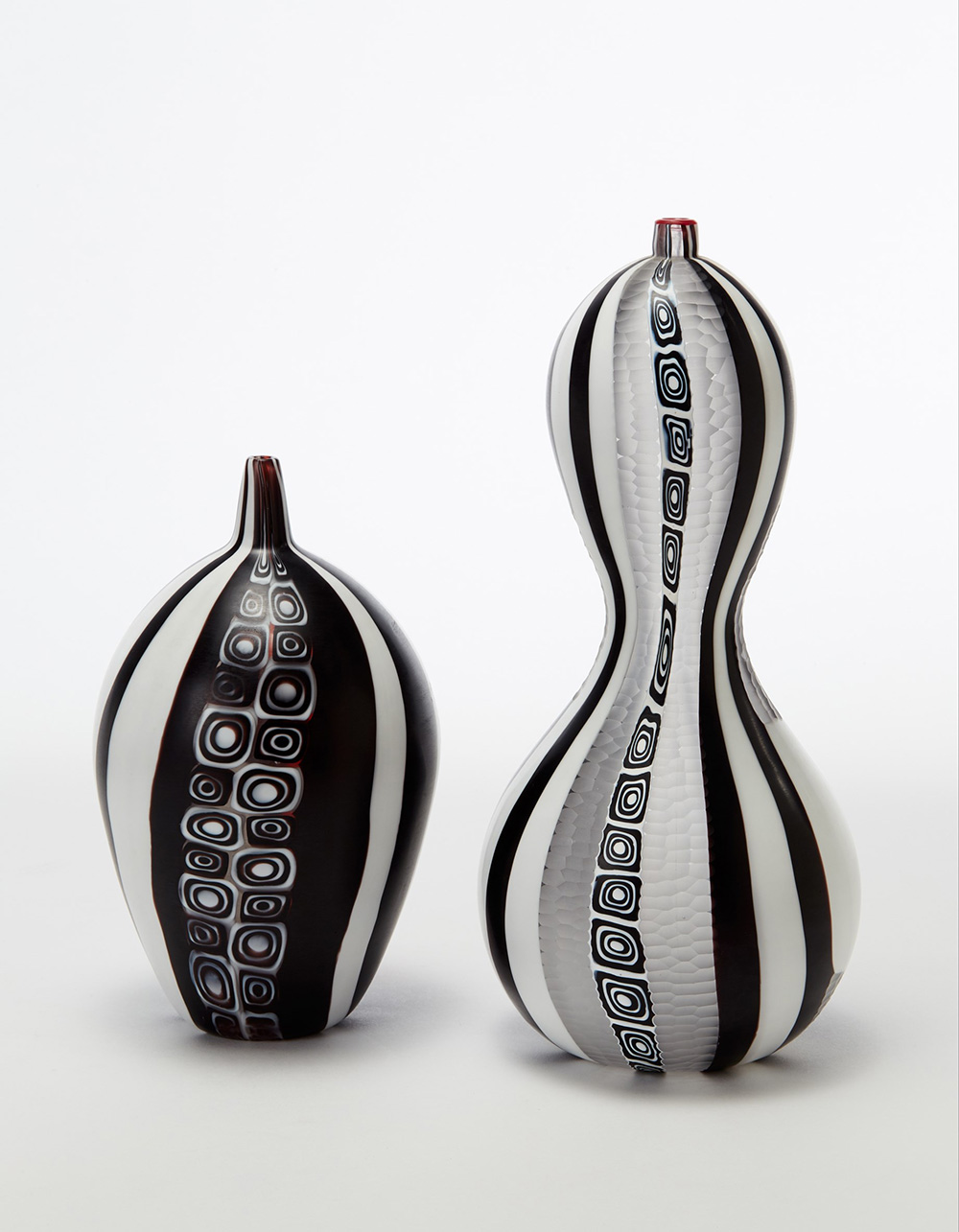 Andrea Zilio (Venezia 1966) Due vasi bulbiformi a collo ristretto a canne...