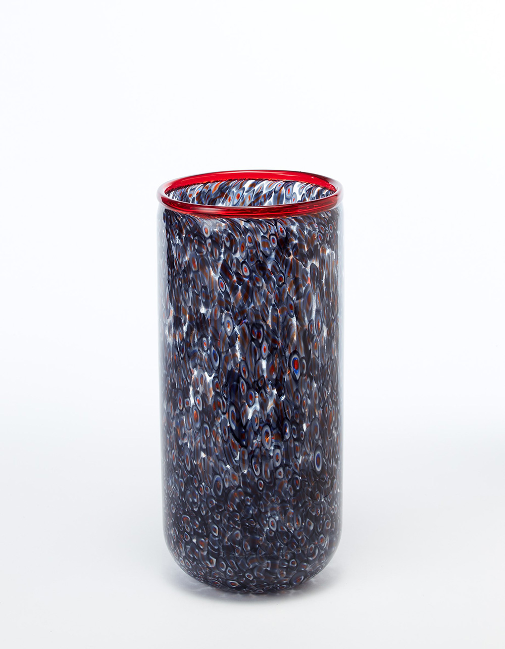 Vistosi Vaso cilindrico della serie "Neverrino", in vetro soffiato a murrine...