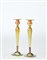 Tiffany Coppia di portacandele in vetro "Favrile" e ottone. New York, prima...