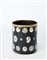 Piero Fornasetti (Milano 1913 - Milano 1988) Contenitore cilindrico in metallo smaltato con monete serigrafate in grigio su fondo nero. bordo e piedini in ottone. Milano anni 50(d cm 19, h cm 21) (difetti)