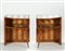 Coppia di comodini angolari impiallacciati e bordati in faggio e betulla, con...
