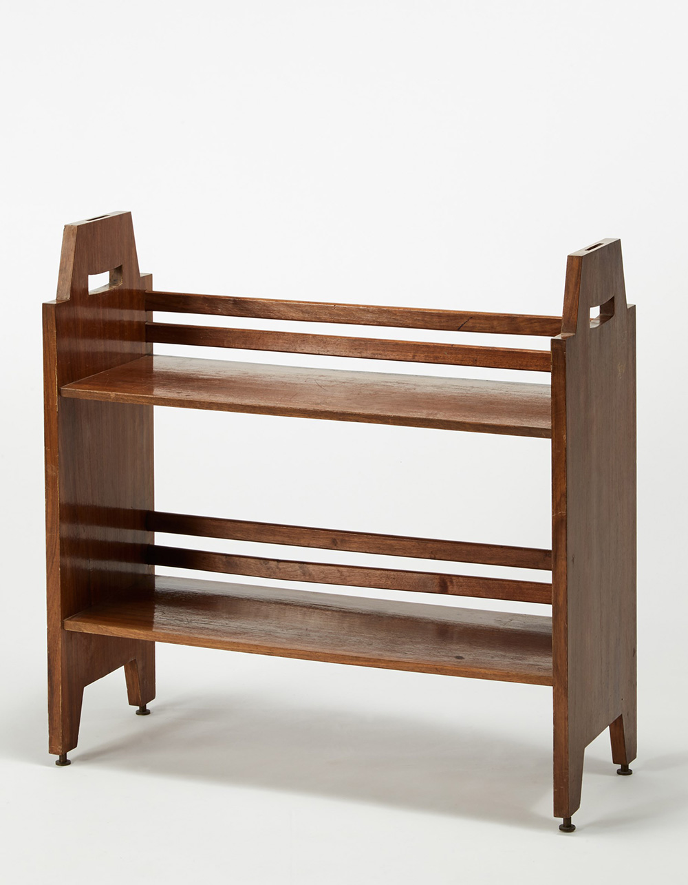 Ignazio Gardella (Milano 1905 - Oleggio 1999) Elemento della libreria modulare ad elementi sovrapponibili a pressione. Esecuzione Azucena 1948. Due ripiani con montanti sagomati e dorsale a giorno in legno di noce. Piedini in ottone. (cm 70x69,5x27,5) (difetti) Bibliografia: Libreria ad elementi, in "Domus", n. 282, maggio 1953, s.p.; I. de Guttry, Il mobile italiano degli anni ?'40 e ?'50, Laterza, Roma-Bari 1992, p. 178, fig. 6