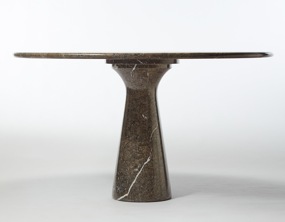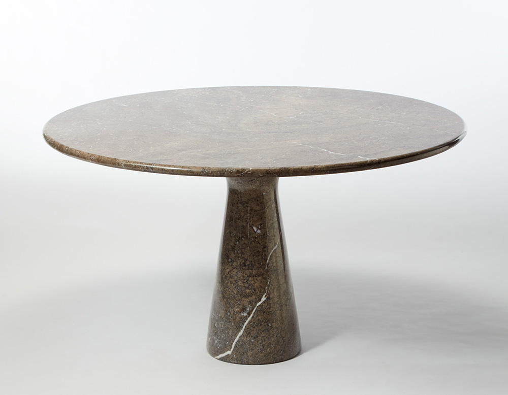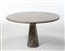 Angelo Mangiarotti (Milano 1921 - Milano 2012) Prototipo del tavolo modello "M1", esecuzione Fucina per Tisettanta, Cantù, fine anni 60. Marmo Grigio Marquina tornito e lucidato (d cm 129, h cm 74) Il prototipo differisce dal modello di serie nella forma del raccordo fra il sostegno centrale e il piano. Mangiarotti, che nella versione definitiva opterà per un raccordo fluido ad arco di cerchio, certamente elegante ma meno incisivo, nel prototipo esprime con forza il valore tettonico della colonna protante. L'appoggio del piano è infatti affidato a una sorta di capitello, un semplice disco di marmo di diametro maggiore rispetto alla colonna, che a sua volta termina la sua entasi con una netta cornice a bordo verticale. L'espressione di valori costruttivi e architettonici, carattere tipico dell'opera di design di Mangiarotti, appare quindi asserito con forza dal prototipo, che diviene così emblematico di una coerente poetica. Esposizioni: Riscoprire Angelo Mangiarotti, Festa del legno 2017, showroom Eredi Marelli, Cantù 23 settembre-8 ottobre 2017 Bibliografia per il modello di serie: "Abitare", n. 75, maggio 1969; "Domus", n 478, settembre 1969, p. 471; "Casa Amica", 22/05/1973, p. 107; U. Dietz, M. Thyriot, K. Sembach, Classici moderni, Editoriale Domus, 1985, p. 44; G. Gramigna, Repertorio del design italiano 1950/2000 per l'arredamento domestico, Allemandi Torino 2003, p. 160; L. Vivanti, Tisettanta: quarant'anni di design, quarant'anni di casa, Electa, Milano 2011, p. 38 Prototype of table "M1" Fucina for Tisettante production, Cantù late 1960s. Marquina grey marble (d cm 129, h cm 74) The prototype differs from the model in production in the joint of the central support and the top.