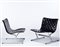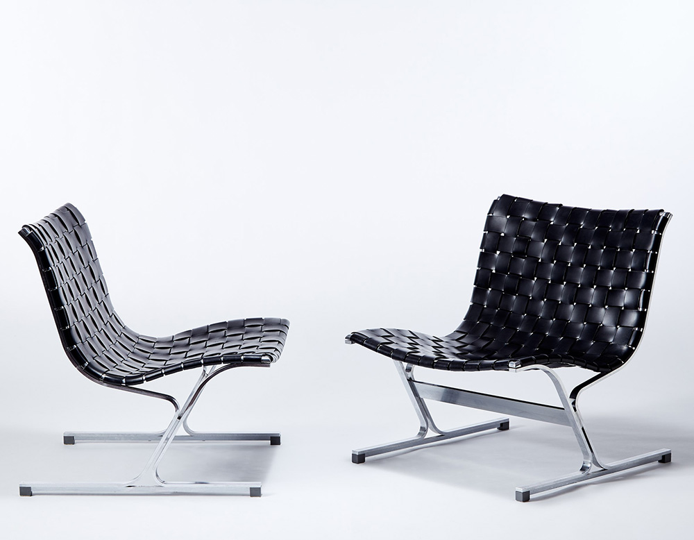 Ross Littell (1924 - 2000) Coppia di poltrone modello "PLR 1". Produzione ICF, Italia anni 60. Acciaio cromato e cinghie nere di cuoio intrecciate (cm 66x75x70) (lievi difetti) Bibliografia: G. Gramigna, Repertorio del design italiano 1950-2000 per l'arredamento domestico, vol. 1, Allemandi, Torino 2003, p. 145