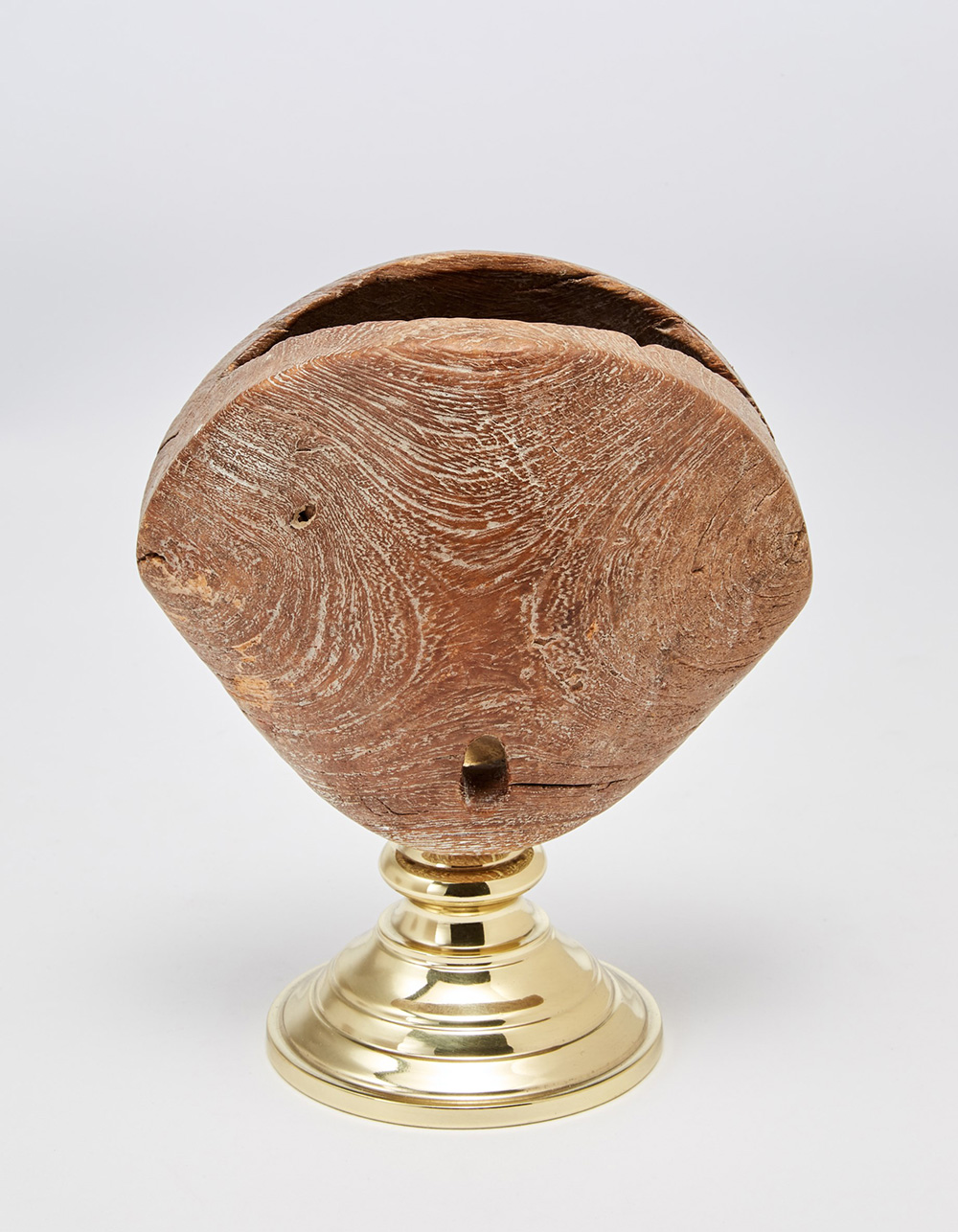 Gabriella Crespi (Milano 1922 - Milano 2017) Soprammobile "Indian Bell" in ottone lucidato e legno, Milano 1973. Firmato sotto la base con il monogramma "GC" (h cm 18,5) (lievi difetti) Provenienza: Showroom Gabiella Crespi, via Montenapoleone, Milano Collezione privata Accompagnata da dichiarazione di autenticità dell'Archivio Gabriella Crespi, Milano