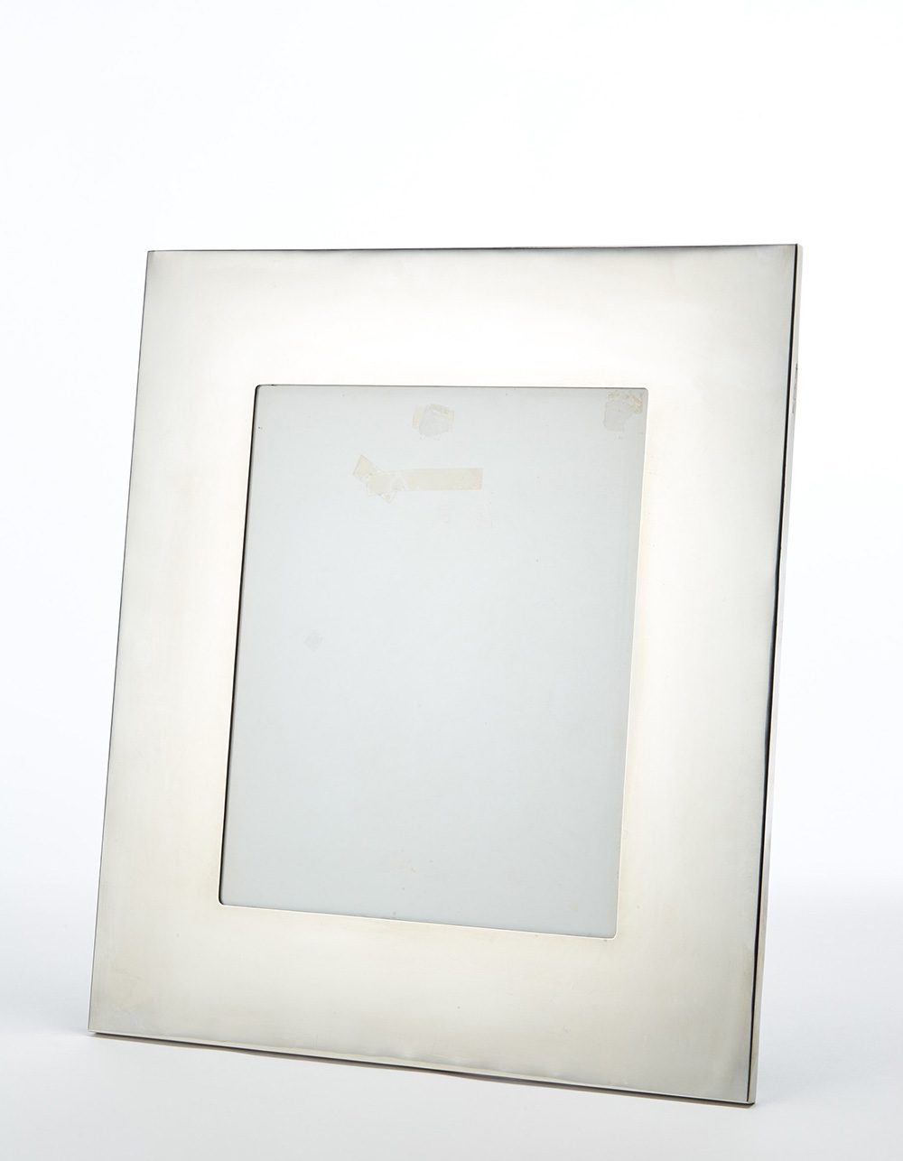 Gabriella Crespi (Milano 1922 - Milano 2017) Grande cornice portaritratto rettangolare in ottone nichelato, Milano, 1965. Firmata a incussione sul fianco "Gabriella Crespi" (cm 50x57) Provenienza: Showroom Gabiella Crespi, via Montenapoleone, Milano Collezione privata Accompagnata da dichiarazione di autenticità dell'Archivio Gabriella Crespi, Milano