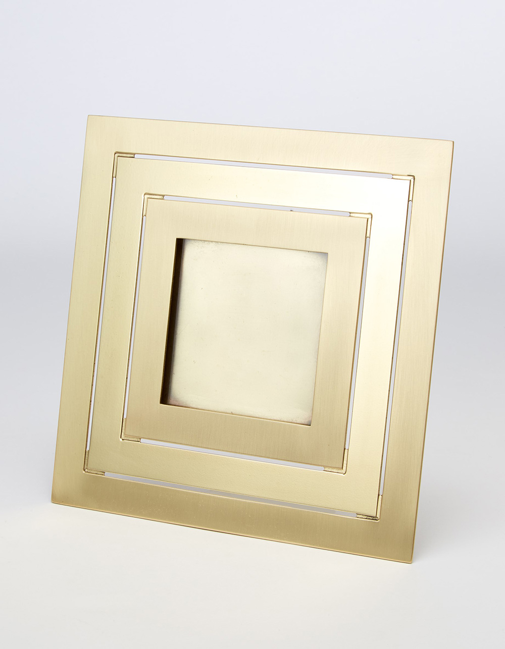 Gabriella Crespi (Milano 1922 - Milano 2017) Cornice portaritratto quadrata in ottone zapponato a fasce alternate lucide e spazzolate, Milano 1973. Firmata a incussione al verso "Gabriella Crespi - BREV." (cm 22x22) Provenienza: Showroom Gabiella Crespi, via Montenapoleone, Milano Collezione privata Accompagnata da dichiarazione di autenticità dell'Archivio Gabriella Crespi, Milano