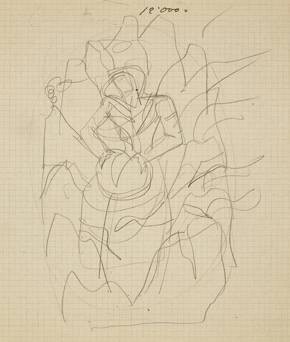 Gio Ponti (Milano 1891 - Milano 1979) Studio per decorazione pittorica, raffigurante una soggetto femminile. Matita su carta quadrettata. Milano, anni 30. In passe-partout di cartoncino nero (cm 22x25,5) Provenienza: Collezione Daria Guarnati, Milano Collezione privata, Milano