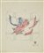 Gio Ponti (Milano 1891 - Milano 1979) "Colombe" Disegno probabilmente destinato alla decorazione di oggetti in ceramica, Milano, anni 30. Matita e pastello rosso e blu. In passe-partout di cartoncino nero (cm 21x26) Provenienza: Collezione Daria Guarnati, Milano Collezione privata, Milano