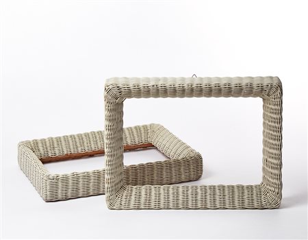 Gio Ponti (Milano 1891 - Milano 1979) Coppia di cornici in midollino intrecciato e verniciato bianco. Milano, anni 50 (cm 27x37) (lievi difetti) Provenienza: collezione privata, Milano Bibliografia: L. Licitra Ponti, Gio Ponti. L’opera, Leonardo, Milano 1990, p. 25o, fig. 525; S. Cattiodoro, Gio Ponti. Scena e design, un unico modo, In Edibus, Vicena 2016, p. 74, fig. 4 Pair of wicker frames painted white. Milano, 1950s (cm 27x37) (minor defects) Provenance: private collection Bibliography: L. Licitra Ponti, Gio Ponti. L’opera, Leonardo, Milano 1990, p. 25o, fig. 525; S. Cattiodoro, Gio Ponti. Scena e design, un unico modo, In Edibus, Vicena 2016, p. 74, fig. 4