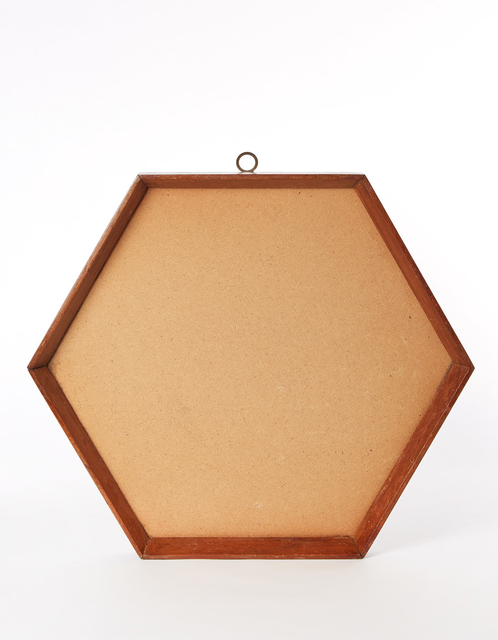 Gio Ponti (Milano 1891 - Milano 1979) Cornice esagonale per specchio in legno massello e masonite. Milano, anni 50 (cm 56,5x50) (lievi difetti e piccoli restauri) Provenienza: collezione privata, Milano Hexagonal wood and masonite frame for mirror. Milano 1950s (cm 56.5x50) (minor defects and small restorations Provenance: private collection, Milano
