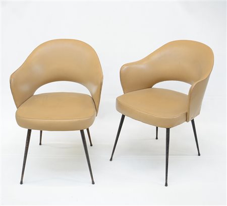 Coppia di poltroncine in ferro e skai beige. Italia, anni 50 (difetti)...