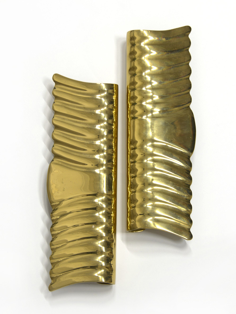 Coppia di maniglie in ottone. Italia, anni 40 (l cm 28)