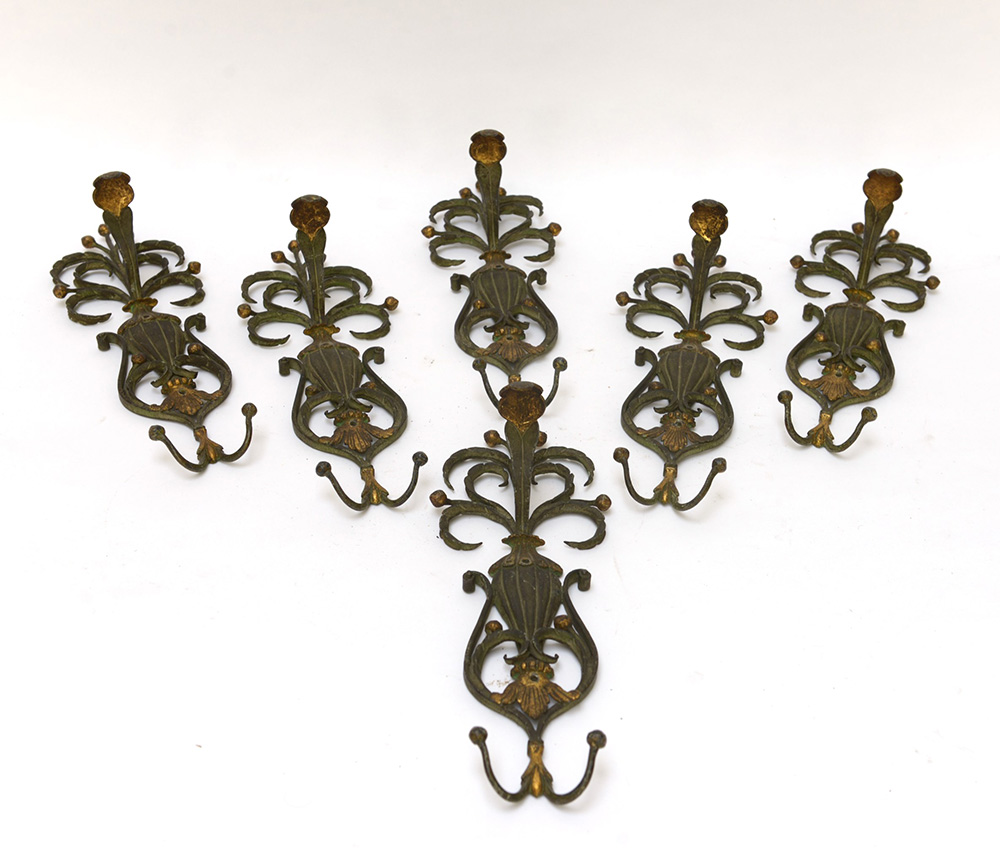 Lotto 637 | Sei appendiabiti di disegno barocchetto. Ferro battuto saldato patinato e...