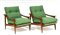 Coppia di poltrone in legno di teak, cuscini rivestiti in tessuto verde. Italia, anni 60 (lievi difetti)