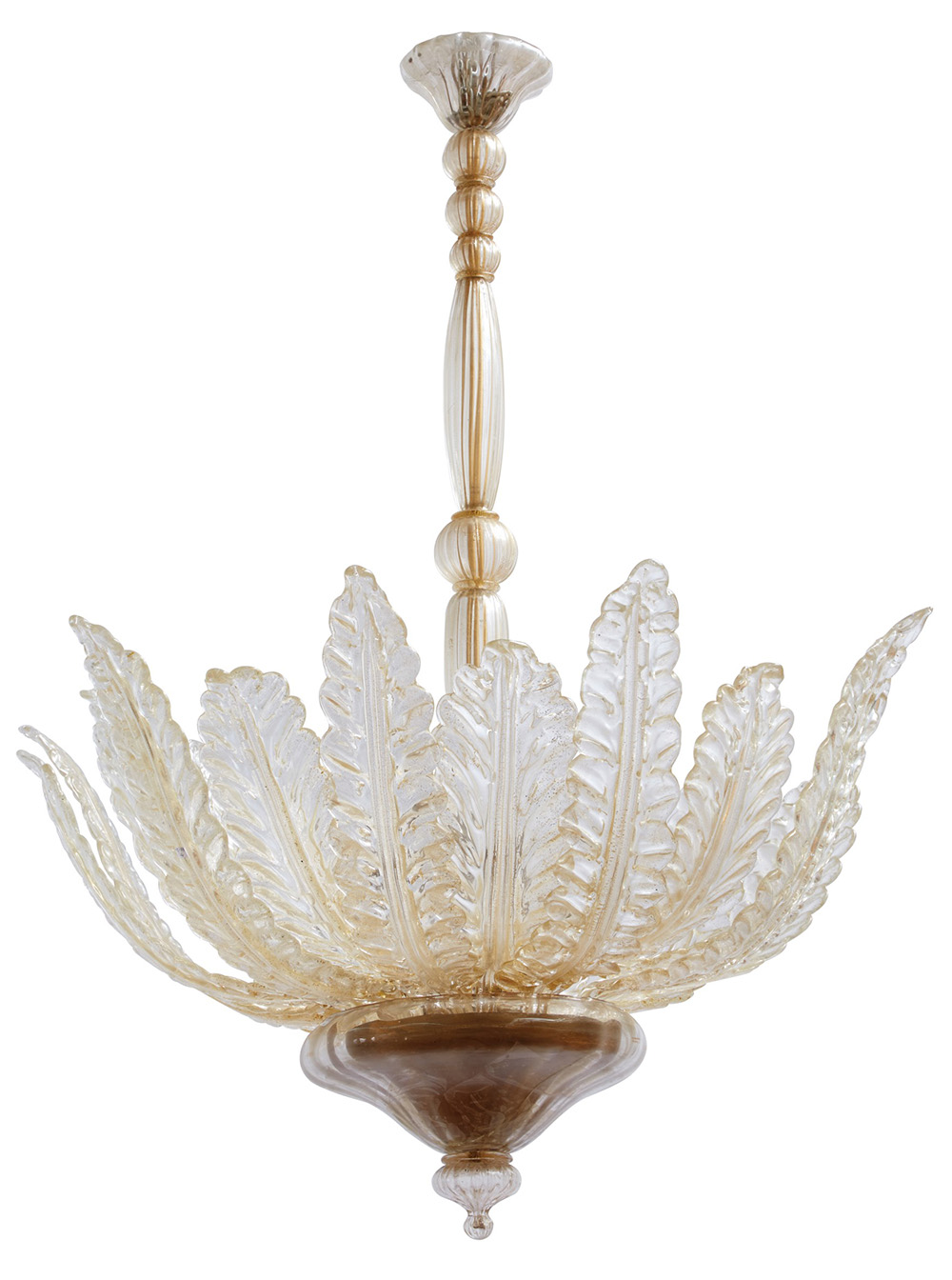 Lotto 754 | Venini (attribuito) Grande lampadario a venti foglie in vetro incolore con...