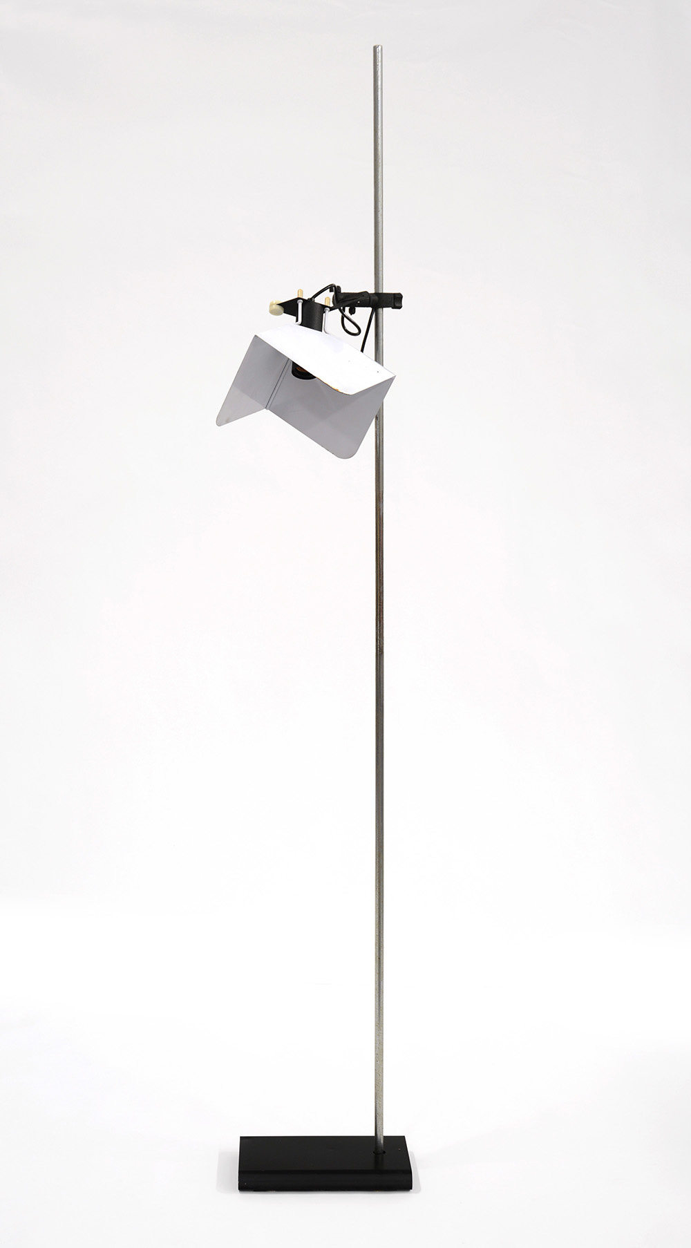 Joe Colombo (Milano 1930 - Milano 1971) Lampada da terra modello "Triedro 066" con base rettangolare in metallo nero, asta cromata, paralume in metallo verniciato bianco. Produzione Stilnovo, Milano, 1972 (h cm 210) Bibliografia: "Domus" n. 510, maggio 1972, pubblicità; "Abitare" n.s. produzione per la casa 1971/72, supplemento al n. 108, settembre 1972, pubblicità; C. & P. Fiell, 100 ligths 1960 to present, Taschen 2005, p. 205; Vitra Design Museum, La Triennale di Milano, Joe Colombo Inventing the Future, Skira, Milano 2005, p. 253