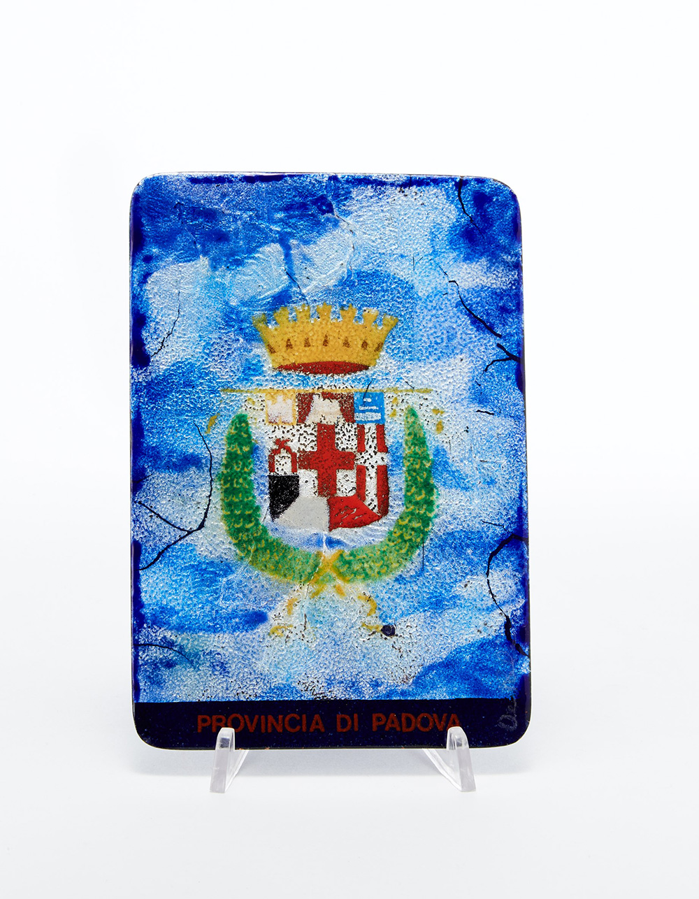 Paolo De Poli (Padova 1905 - Padova 1996) Formella in rame smaltato in policromia e con lamina d'argento, decorata con lo stemma della provincia di Padova. 1987 (cm 12,5x18)