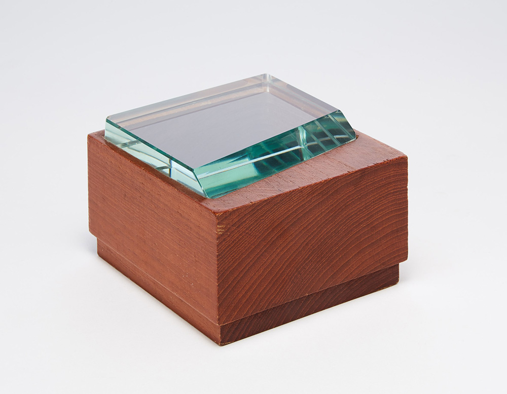 Fontana Arte (attribuito) Scatola in legno massello con coperchio in cristallo molato. Milano, anni 50 (cm 12,5x7,5x12) (lievi difetti)
