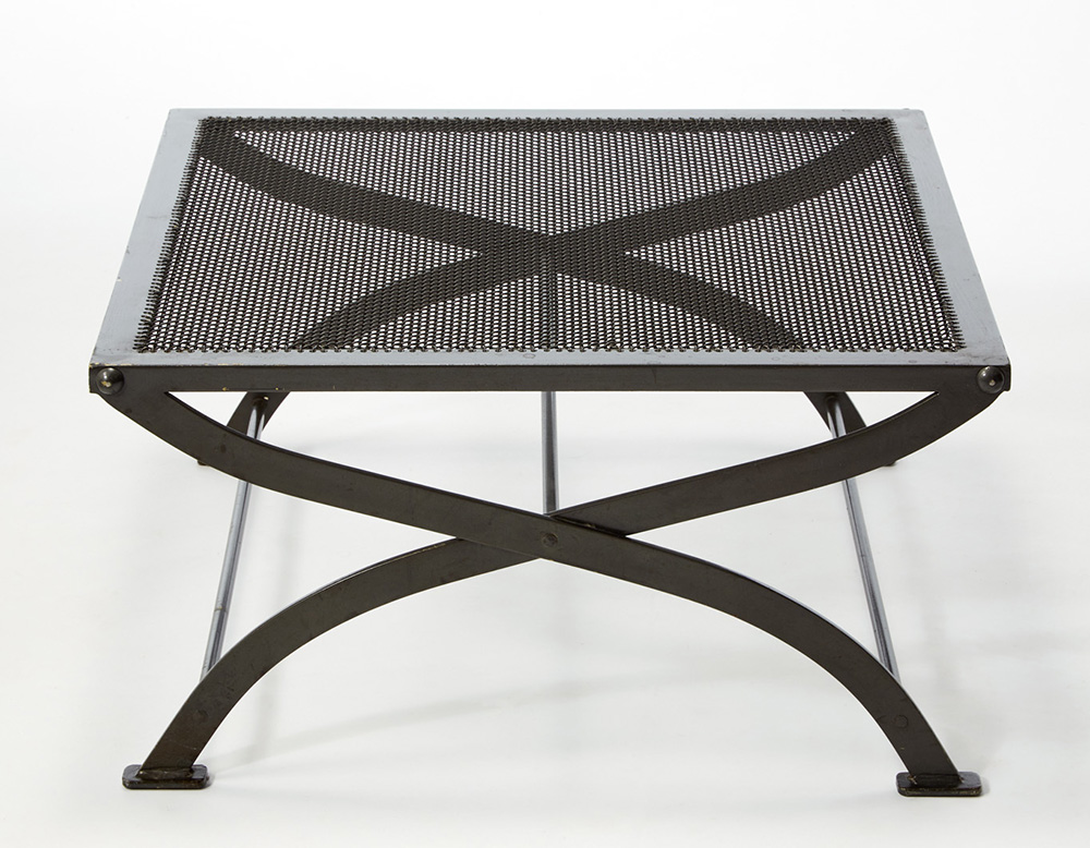 Luigi Caccia Dominioni (Milano 1913 - Milano 2016) Panchetto della serie "Nonaro". Produzione Azucena, Milano, anni 70. Metallo verniciato grigio metallizzato (cm 67x32x64) (lievi difetti) Bibliografia: Azucena. Mobili e oggetti, Catalogo del produttore, Milano, s.d. [2012], pp. 214-215