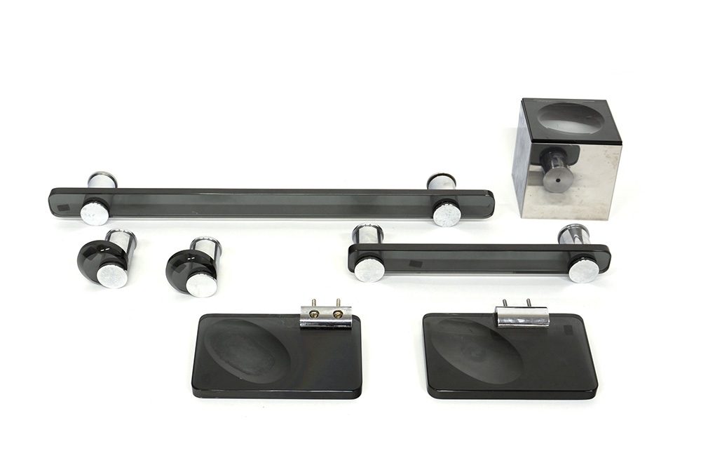 Fontana Arte (attribuito) Set da bagno in vetro e acciaio cromato. Italia,...