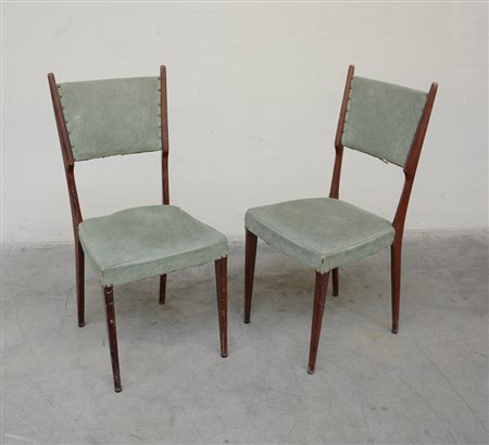 Coppia di sedie rivestite in tessuto verde chiaro. Italia, anni 40...