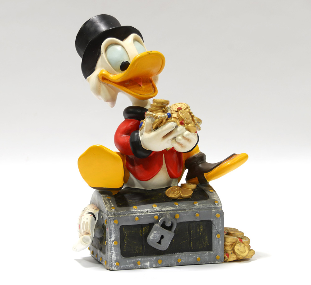 Lotto 875 | Zio Paperone e il tesoro. Resina policroma. Marcato "© DISNEY" (h cm 58)...