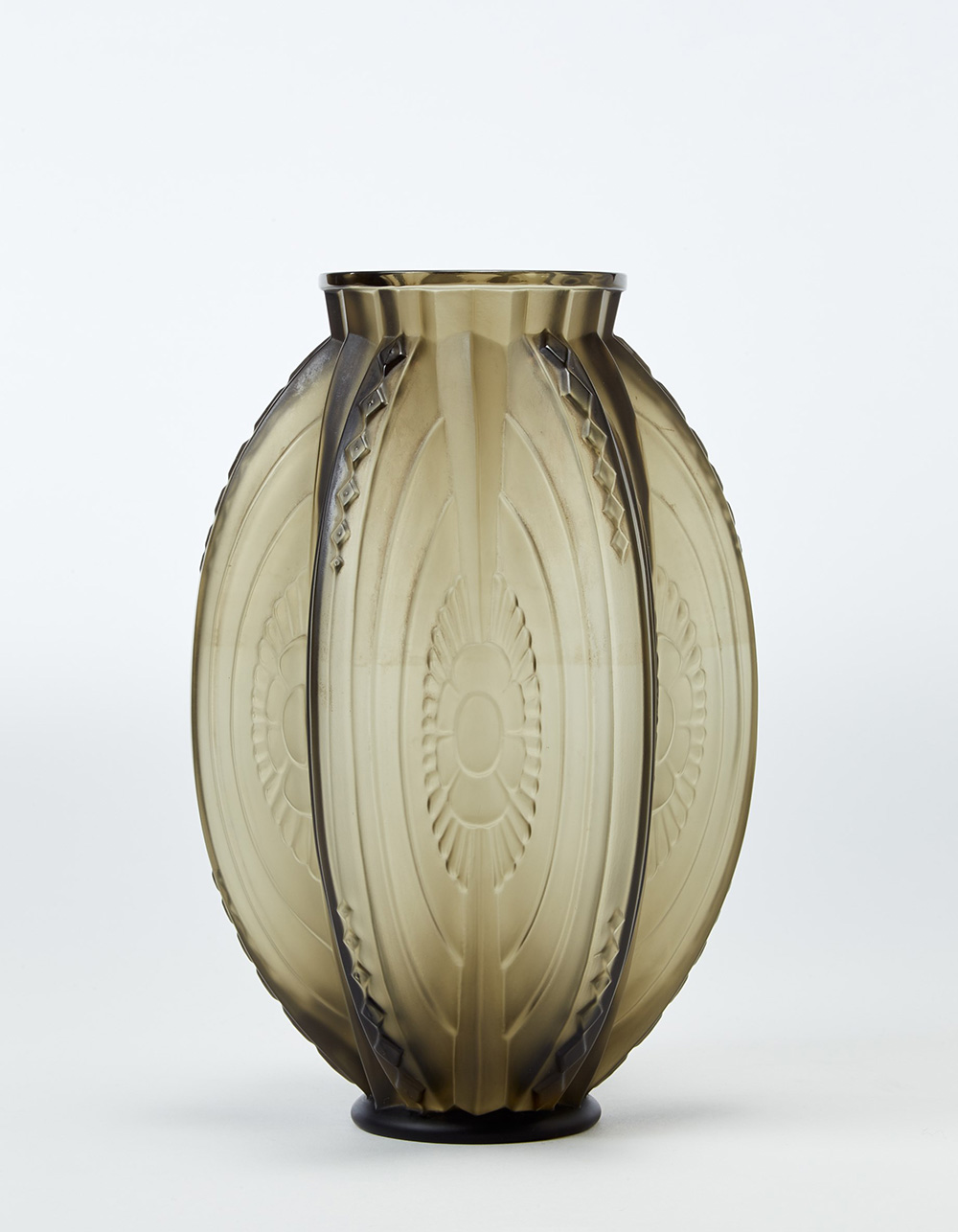 Marius Ernest Sabino (1878 - 1961) Vaso in vetro fumé soffiato a stampo,...