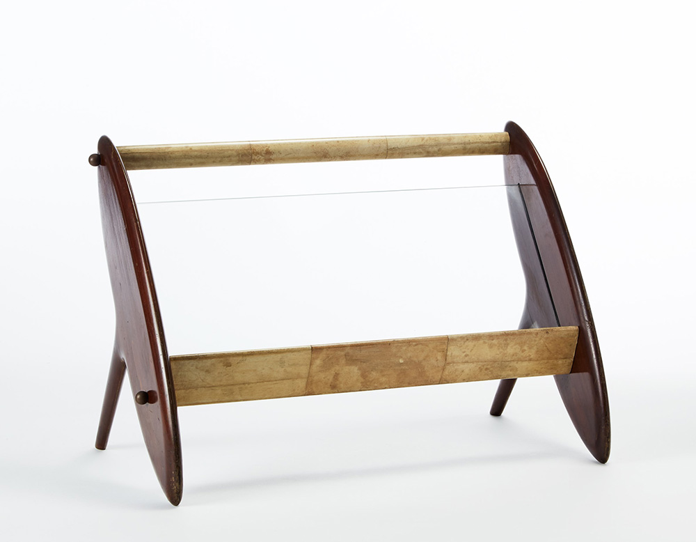 Porta riviste in legno massello di mogano parzialmente rivestito in pergamena...