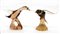 Nason Lotto di due sculture in vetro massello ambrato raffiguranti uccelli. Murano, anni 80. Firmati "NASON" a punta sotto la base (h cm 25, h cm 22)