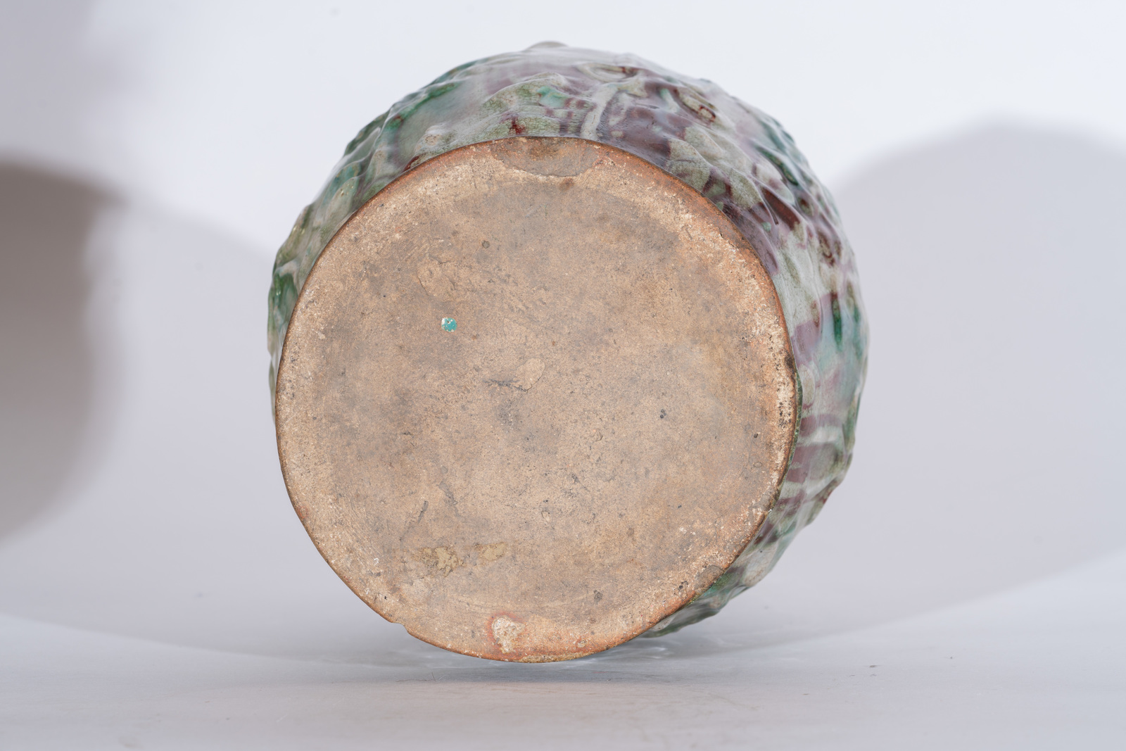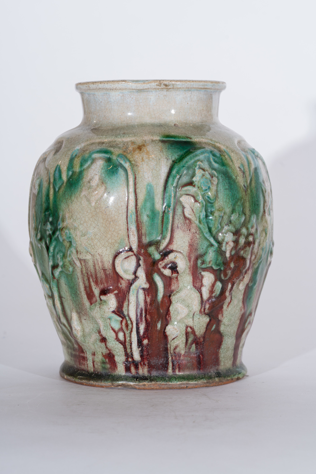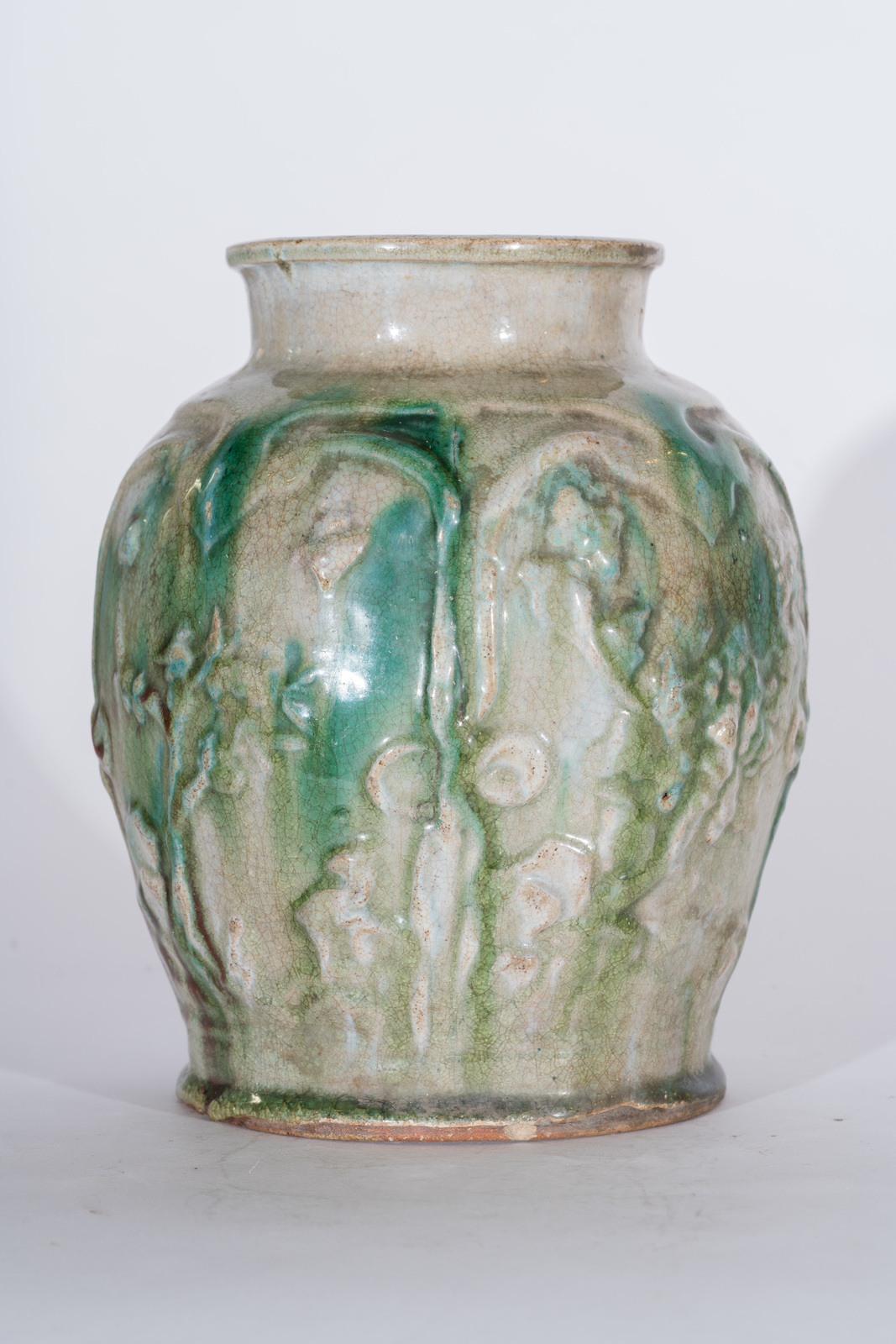 Chinese Art A Sancai style vase moulded with floral motifs and glazed with dashes of green strains