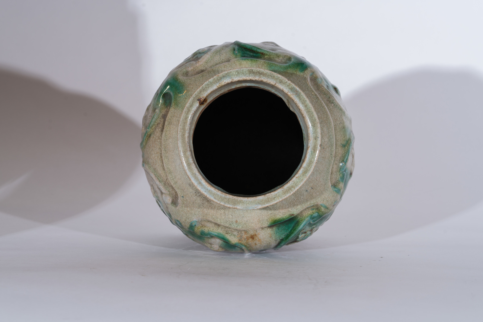 Arte Cinese Vaso tipo sancai stampato a motivo floreale ed invetriato con colate di verde