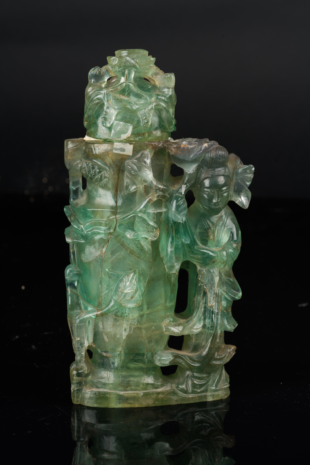 Arte Cinese Due vasi con tappo intagliati in quarzo