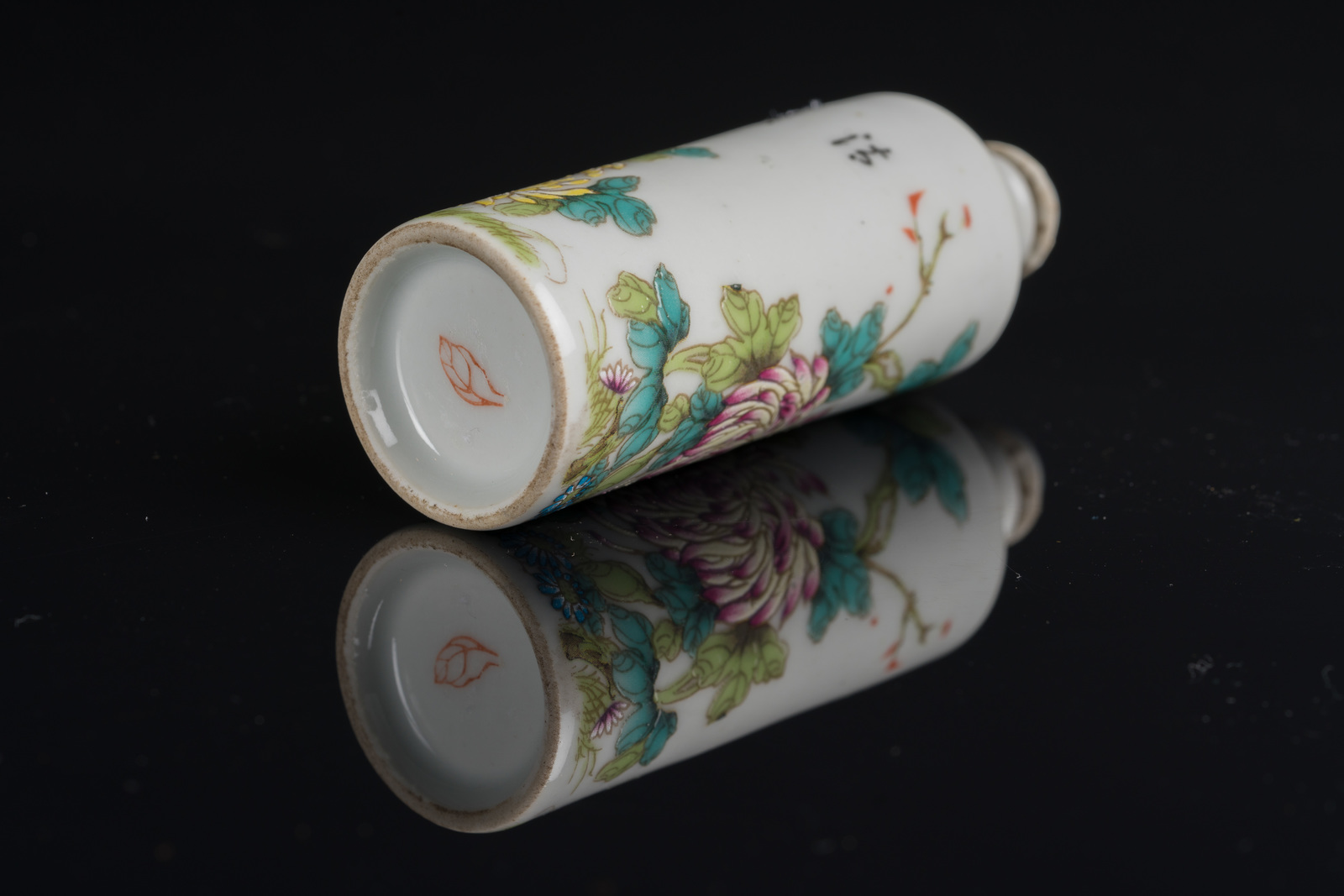 Arte Cinese Tabacchiera a rullo in porcellana dipinta con uccello tra fiori...